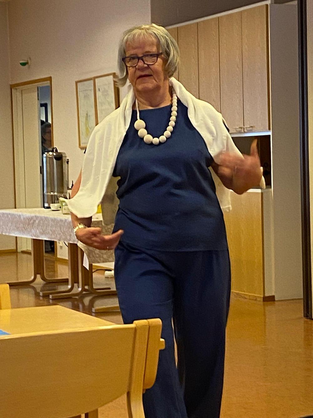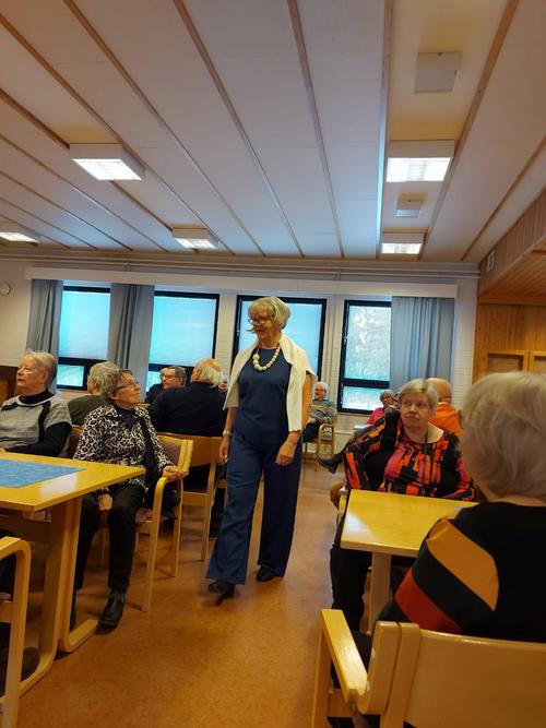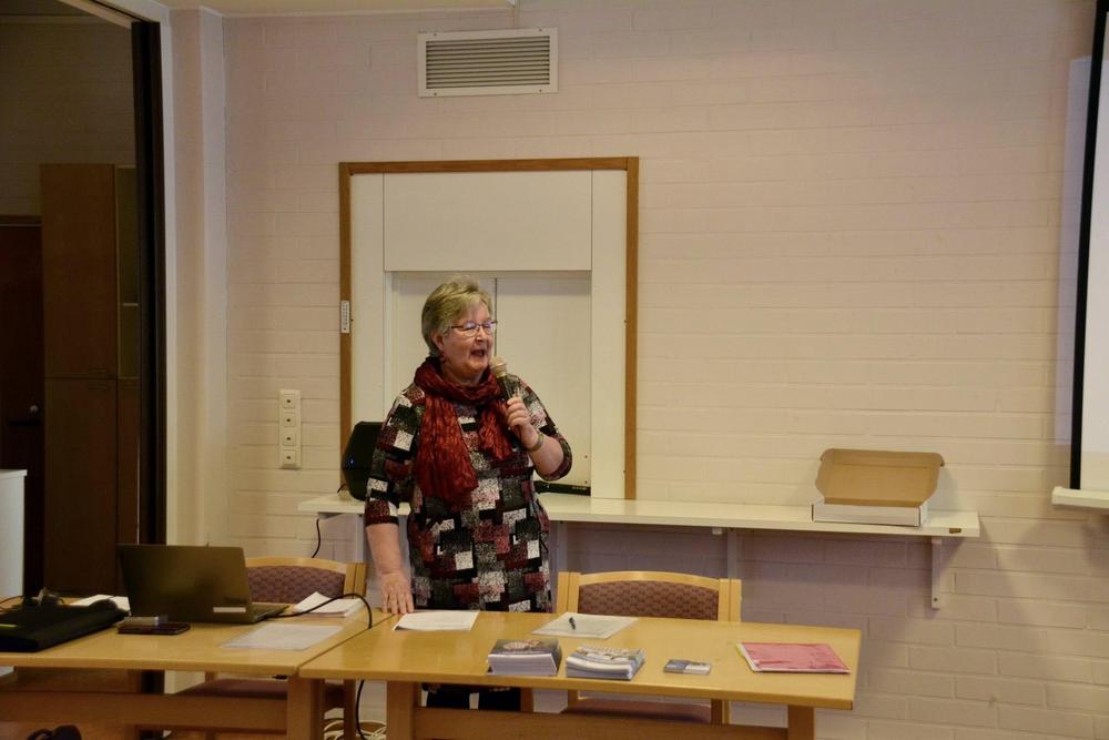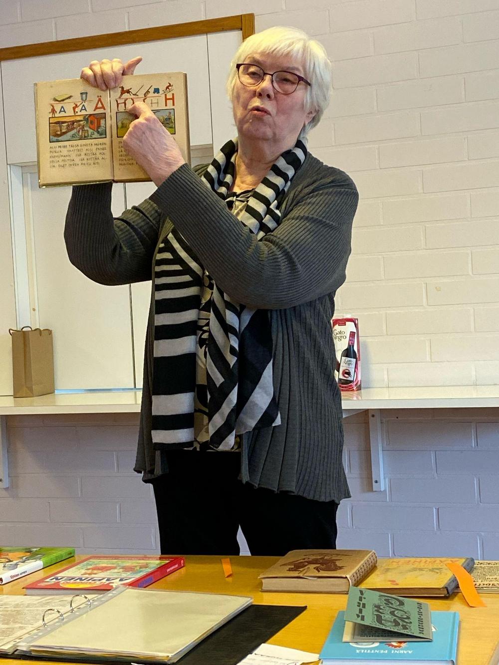 Ritva Pöllänen esitteli aapisia senioreiden kuukausitapaamisessa