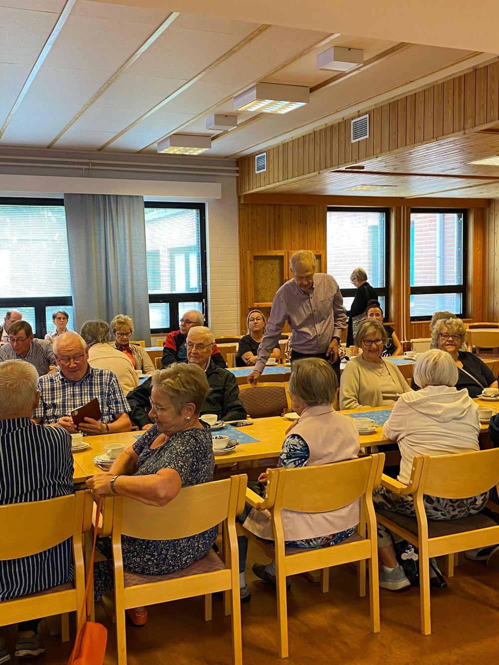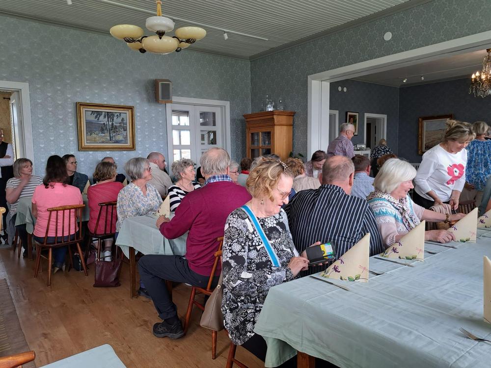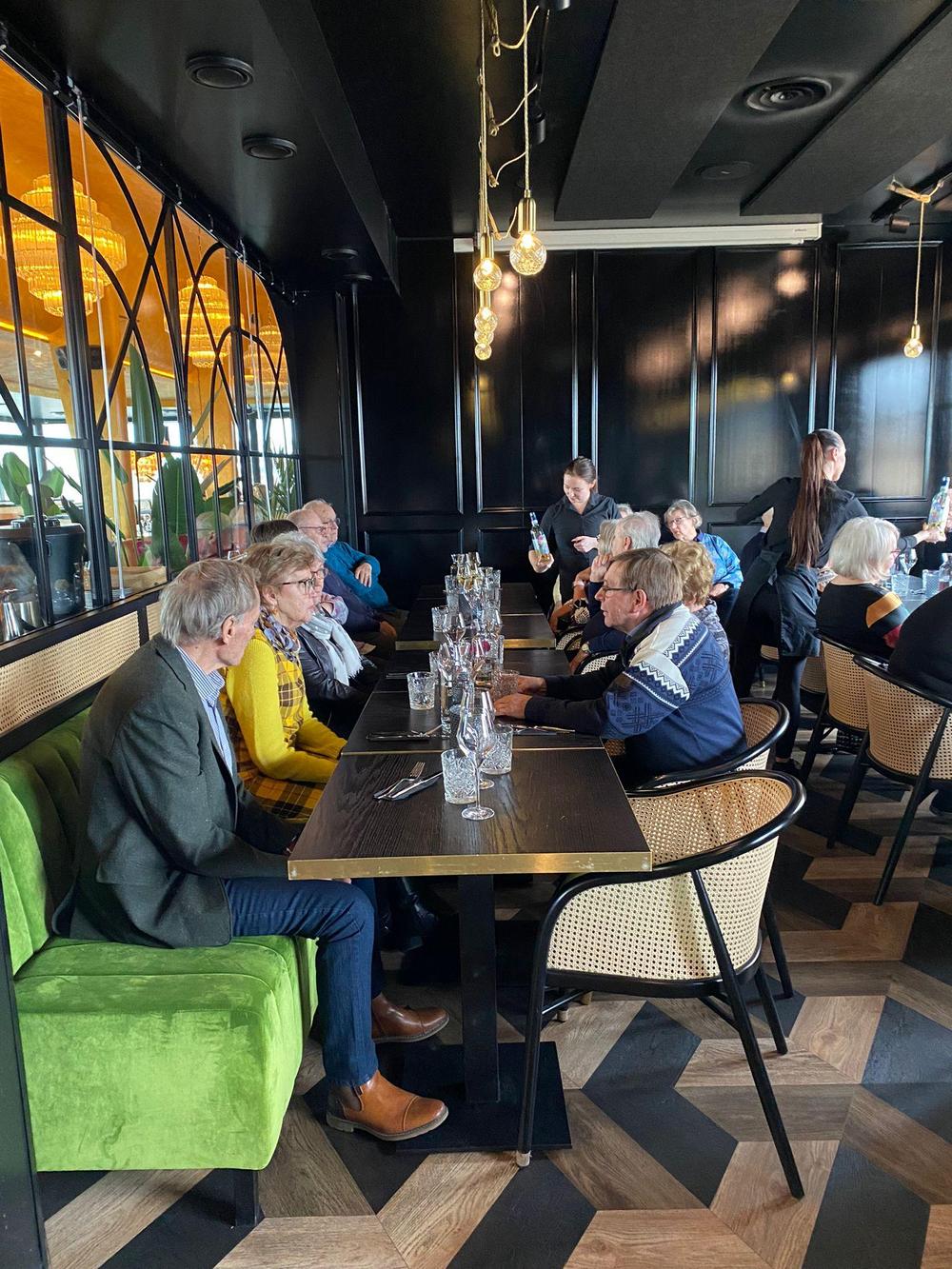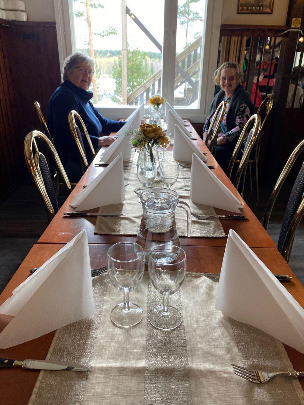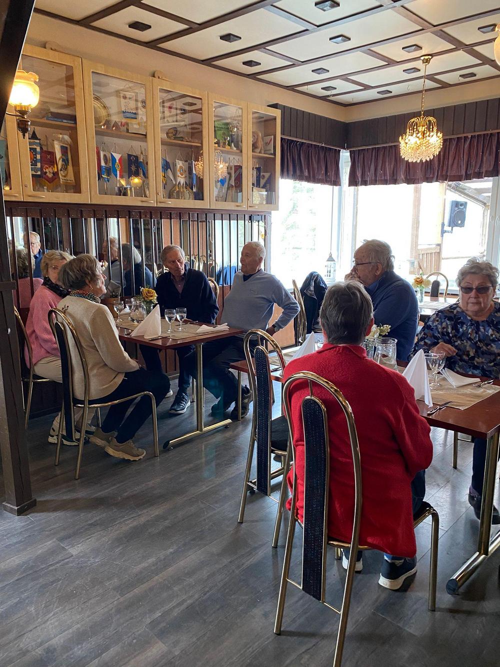 Aurinkoisena päivänä oli mukava ajella hienoissa maisemissa, ja tunnelma jatkui lämpimänä myös lounaalla. Meitä oli mukana 32 senioria, tilaisuuden isäntänä toimi Sakari Sillanpää.