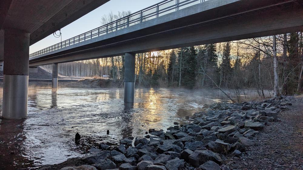Aurinko pilkisteli puiden lomasta, ja kirkas, kirpeä ilma loi kauniin valon jokimaisemaan. Reitti kulki metsän suojassa, veden äärellä ja myös sillan alta – maisemat tarjosivat upeita hetkiä niin kameralle kuin mielellekin.
