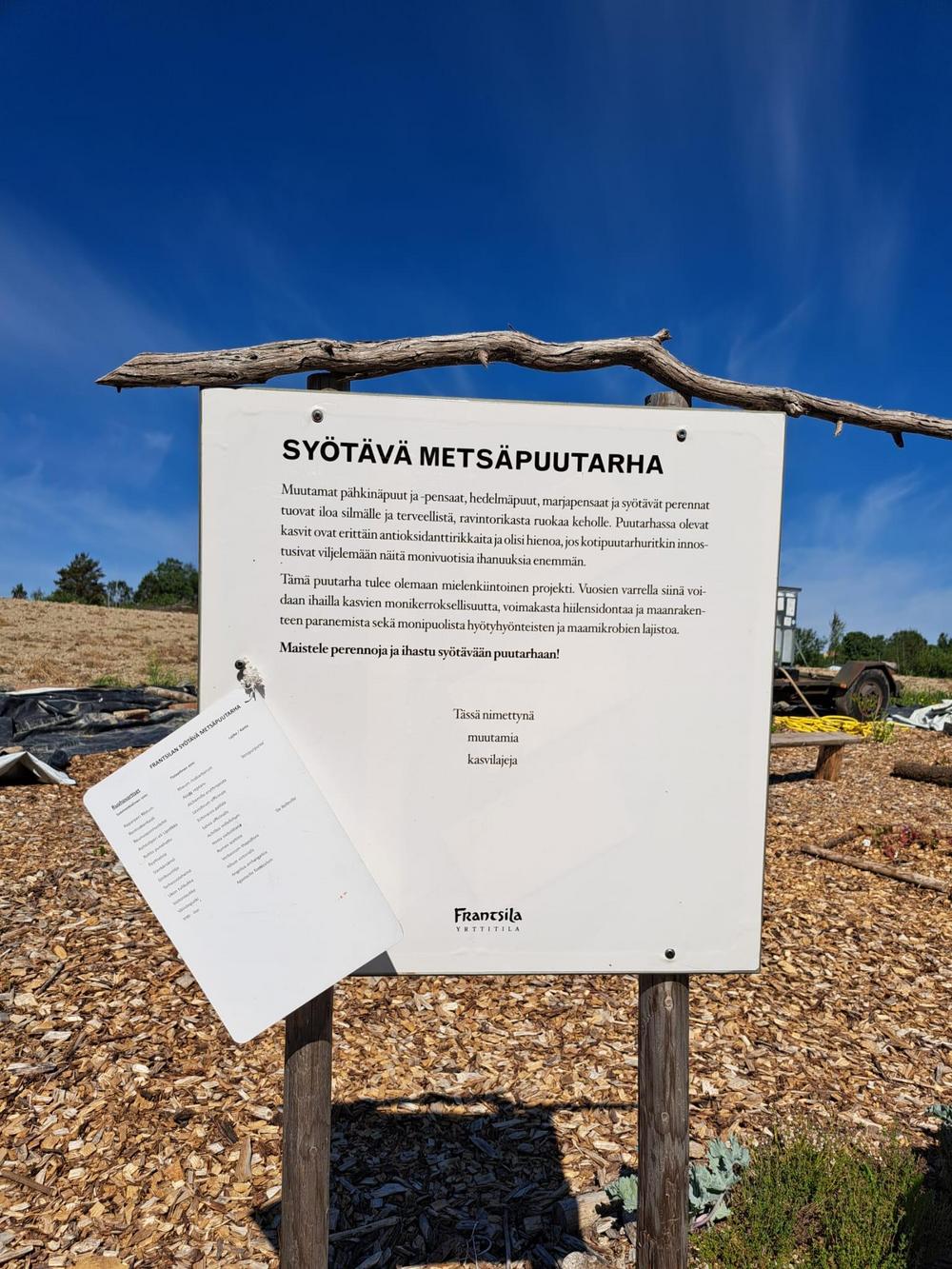 Frantsilan yrttitilalla tutustuimme Syötävään metsäpuutarhaan ja ihastelimme monipuolista kasvustoa, joka on suunniteltu niin terveyden kuin mielenkin virkistykseksi. Opastaulut tarjosivat tietoa ja inspiraatiota, ja polut johdattivat meidät kauniin luonnon keskelle.
