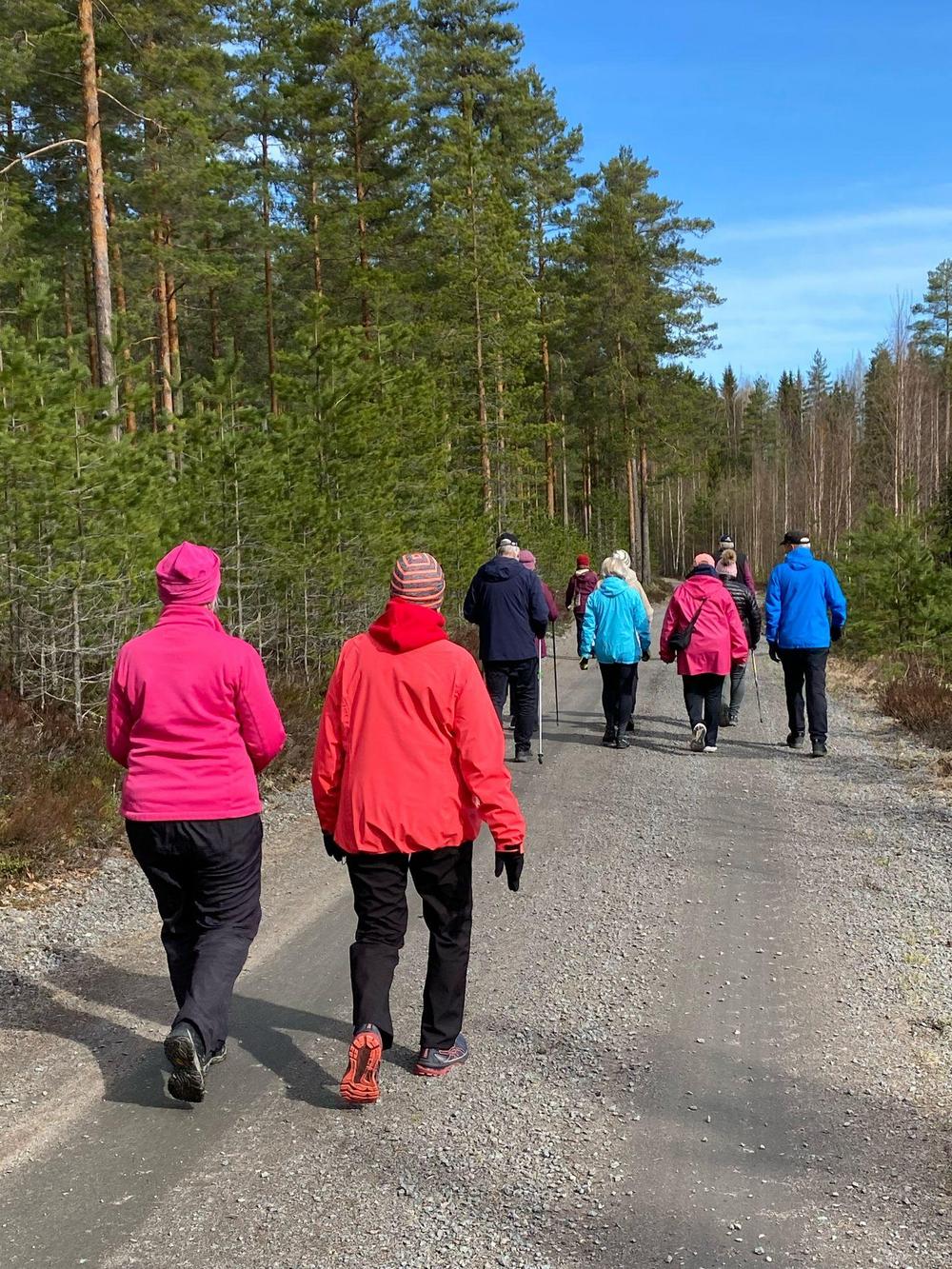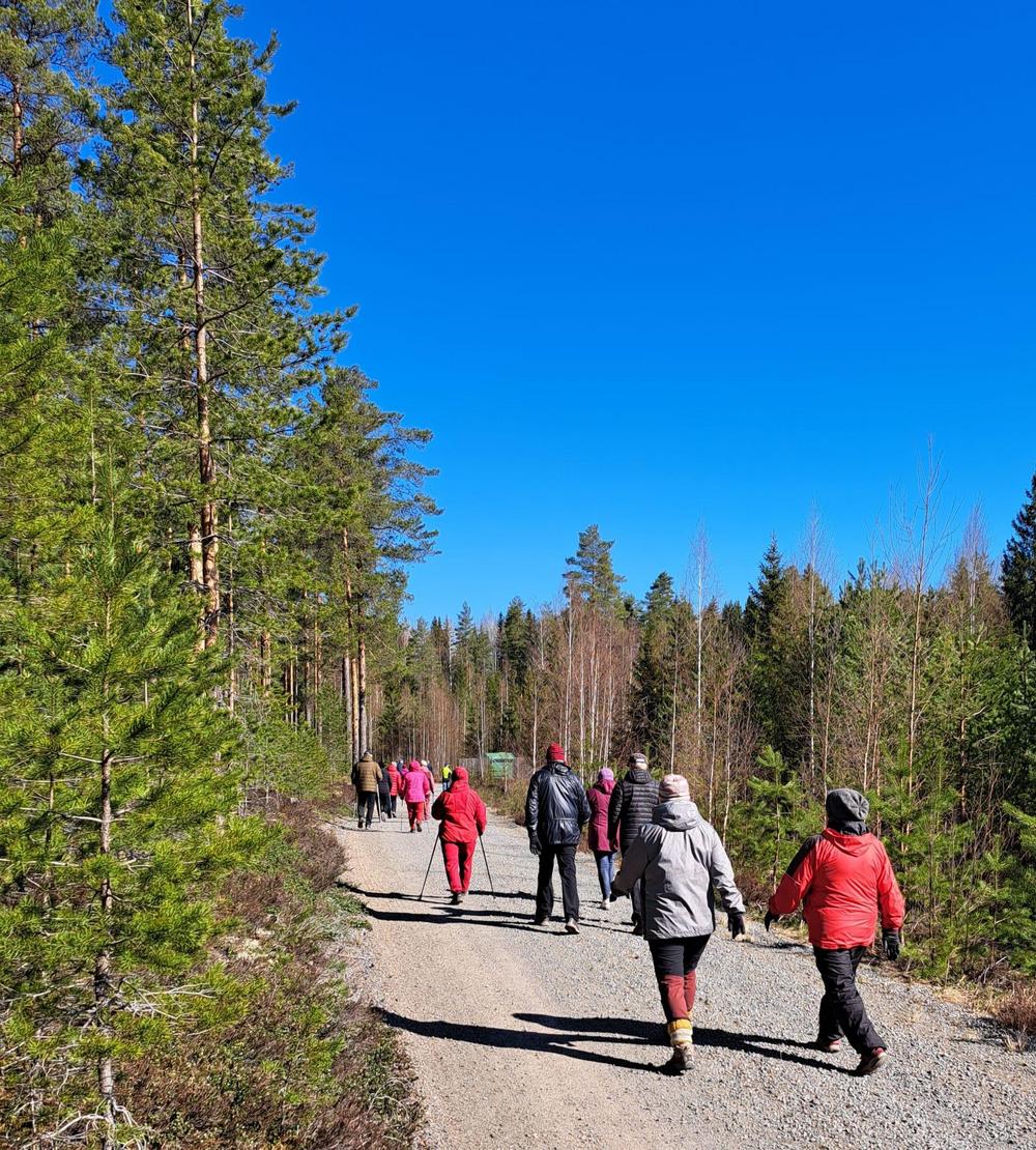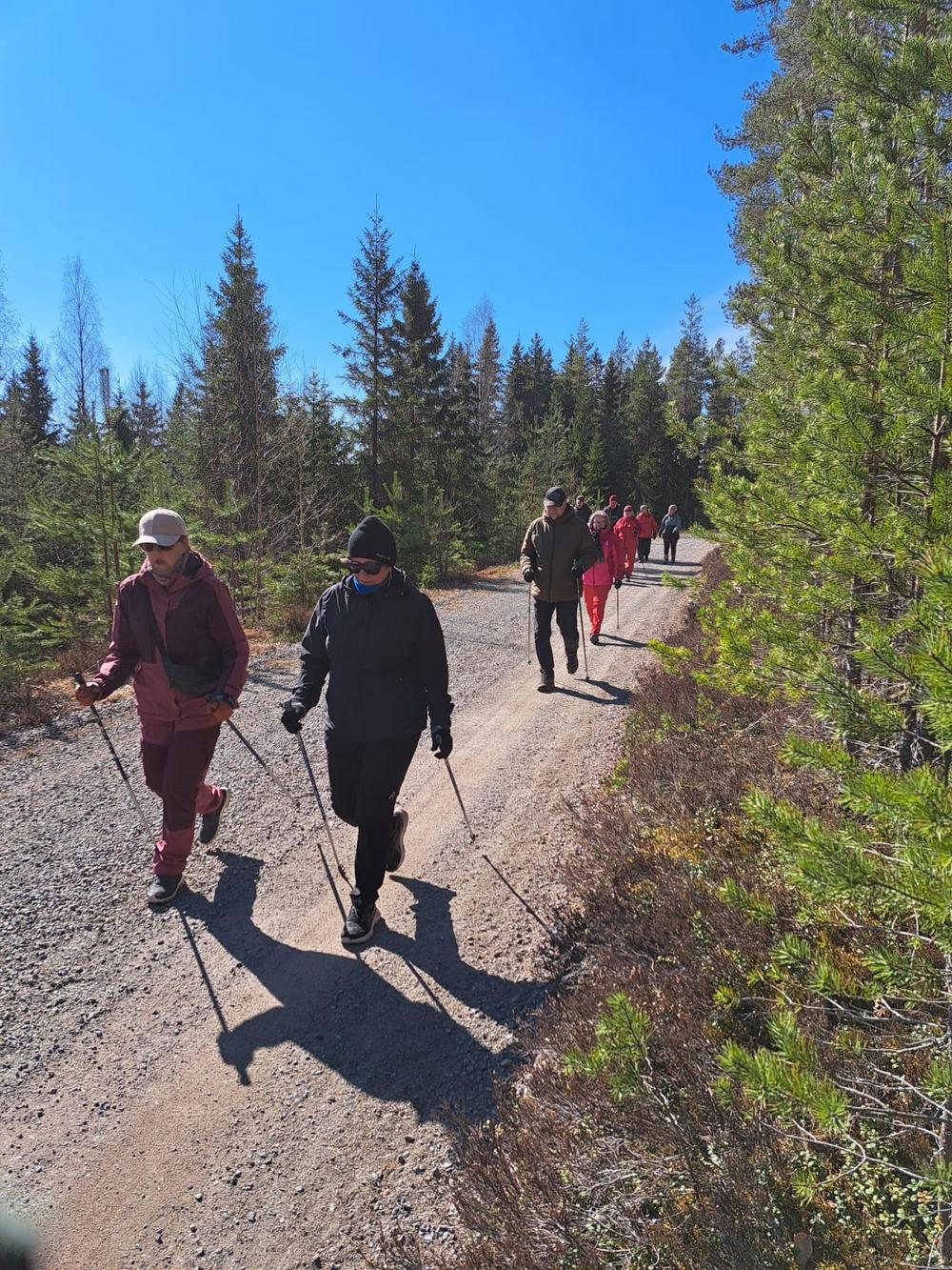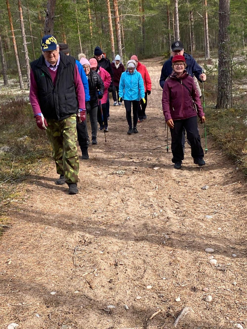 Tässä muutamia tunnelmakuvia senioreiden ulkoilupäivästä. Mukana reippailemassa oli 16 iloista osallistujaa, ja sää todella suosi meitä.
