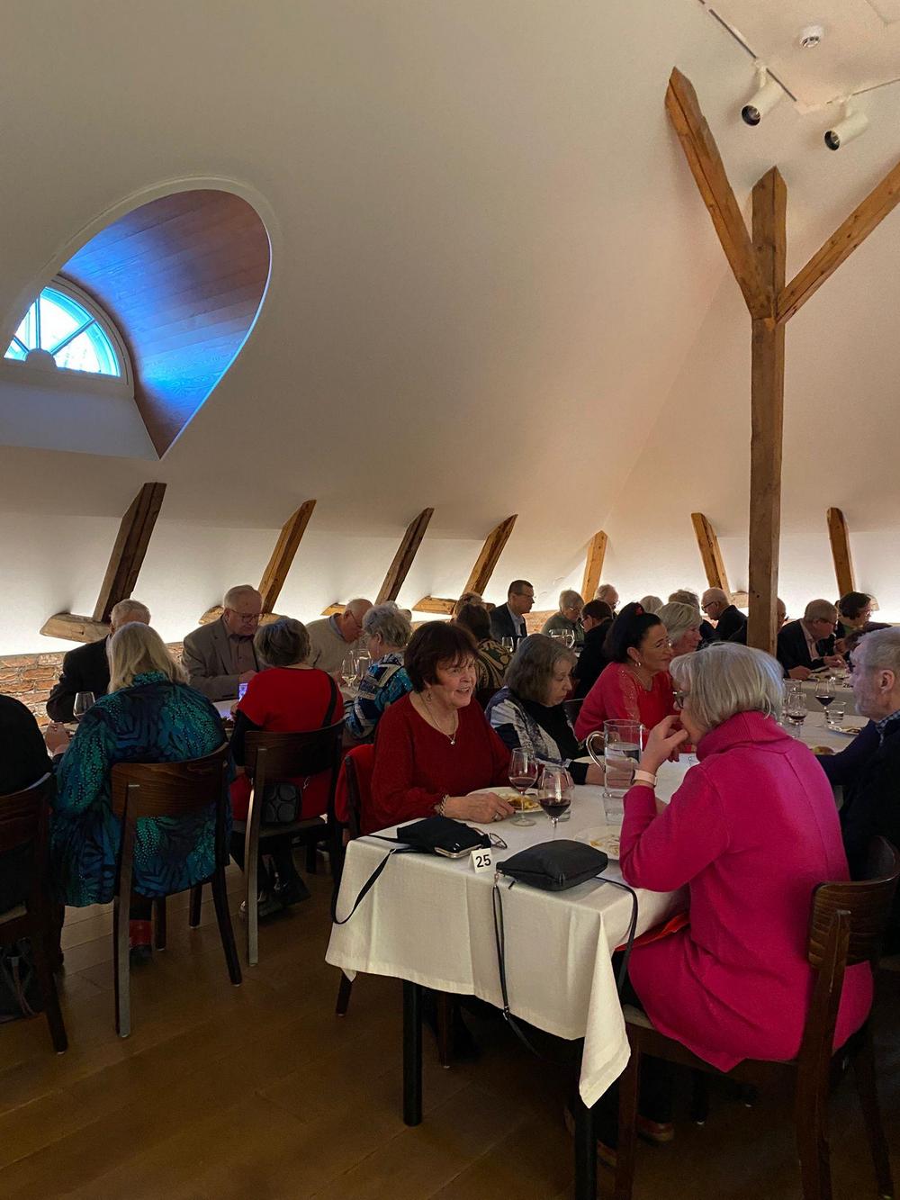 Marraskuun lounastapaaminen vietettiin Tei-Tuvalla lämpimässä ja kodikkaassa tunnelmassa. Runsas noutopöytä tarjosi monenlaisia herkkuja alkusalaateista jälkiruokien riisipuuroon ja luumukiisseliin. Pöydissä riitti juteltavaa ja naurua, ja ikkunan takana näkyi jo talvinen maisema. Mukava yhdessäolon hetki keskellä vuoden pimeintä aikaa.