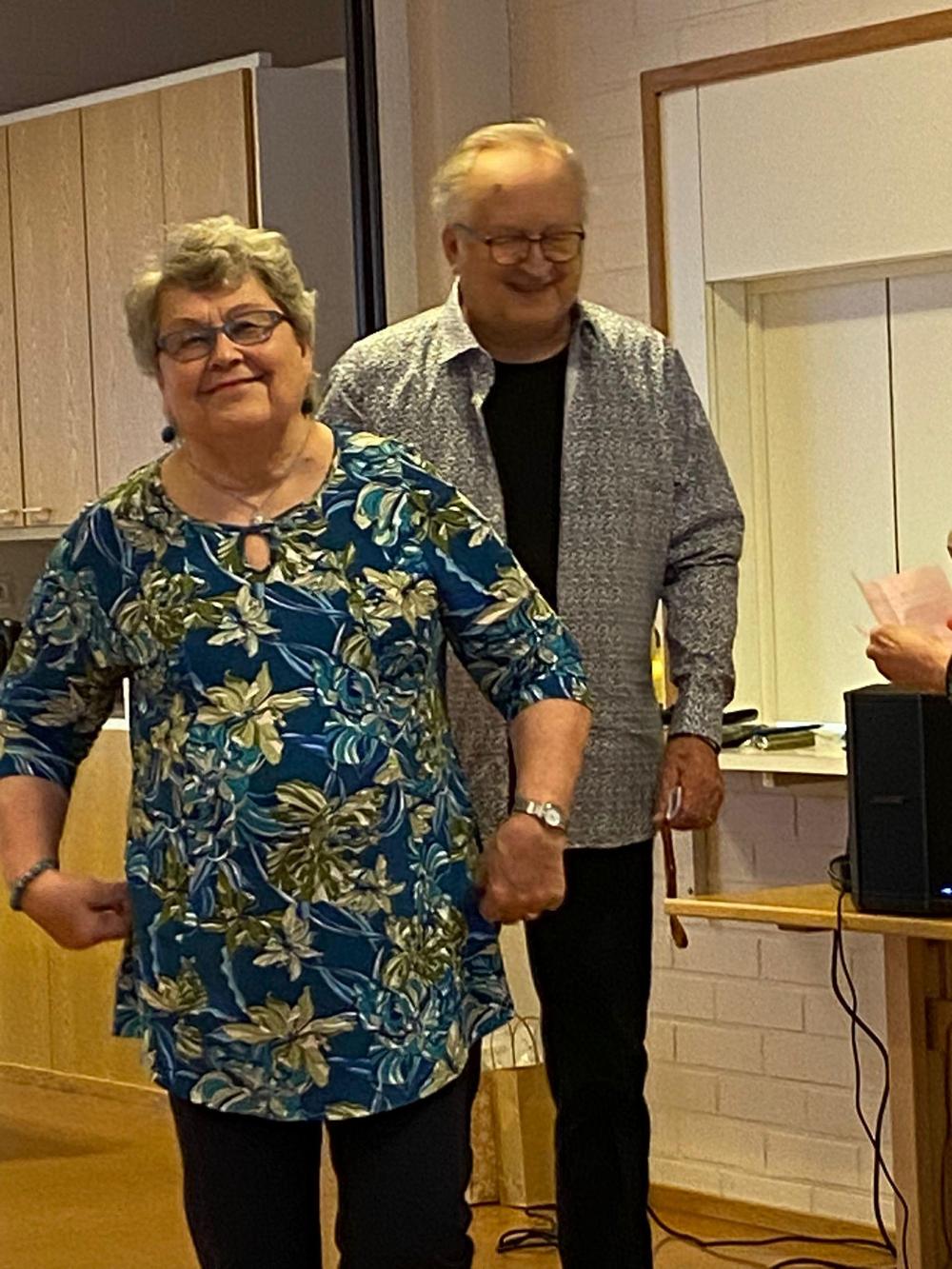 SPR Hämeenkyrön osaston puheenjohtaja Ulla Hakala toimi tilaisuuden asiantuntevana ohjaajana. Kuvassa Ulla ja Kauko Autio jakavat tietoa ja taitoja hätätilanteiden varalle.