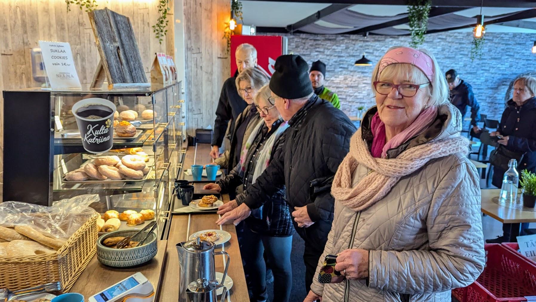 Kävelyn päätteeksi kokoonnuttiin Selmaan kahville ja virvokkeille – mukava hetki vaihtaa kuulumisia ja lämmitellä reippailun jälkeen.