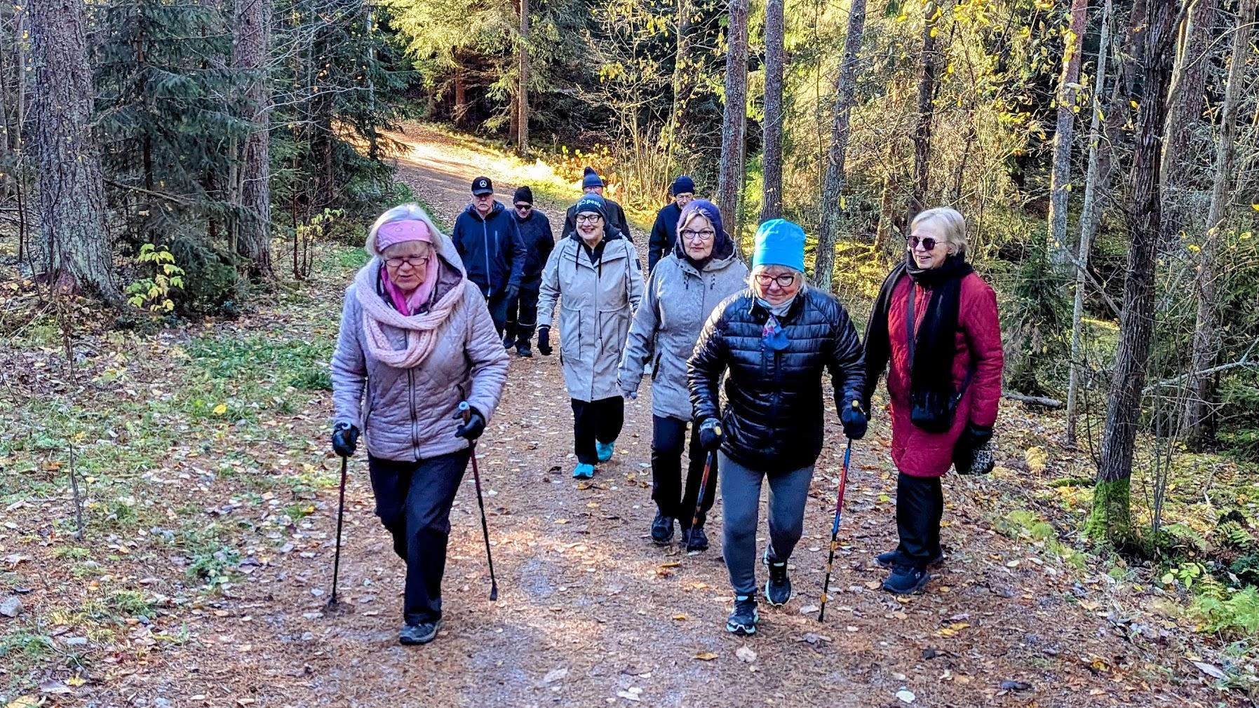 Tässä muutamia tunnelmakuvia senioreiden ulkoilupäivästä. Mukana reippailemassa oli 16 iloista osallistujaa, ja sää todella suosi meitä.