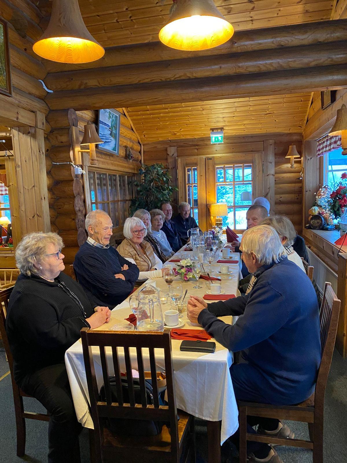 Aurinkoisena päivänä oli mukava ajella hienoissa maisemissa, ja tunnelma jatkui lämpimänä myös lounaalla. Meitä oli mukana 32 senioria, tilaisuuden isäntänä toimi Sakari Sillanpää.