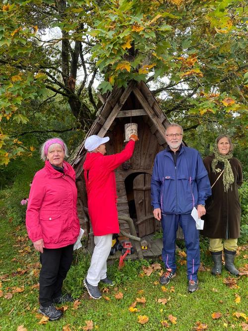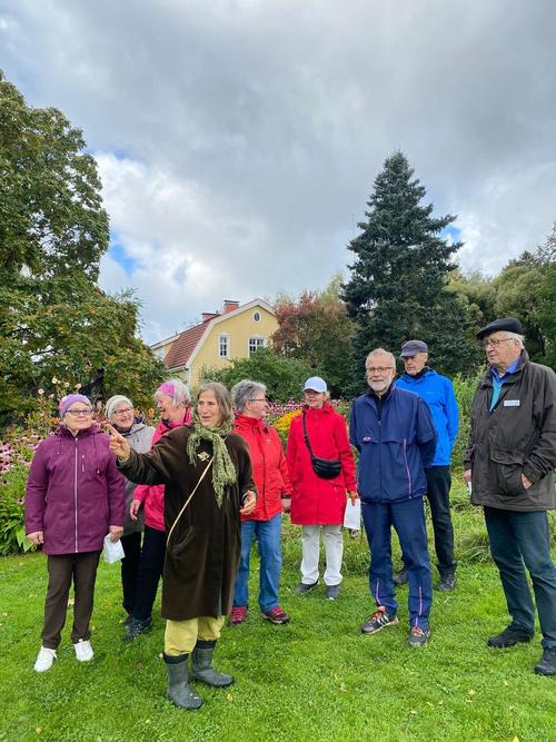 Terveisiä senioreiden kävelyretkeltä Frantsilan Hyvän Olon Keskuksesta missä kiersimme Virpi Raipala-Cormierin opastamana puutarhat ja yrttitarhat ja pääsimme myös tutustumaan uuteen Kievariin.