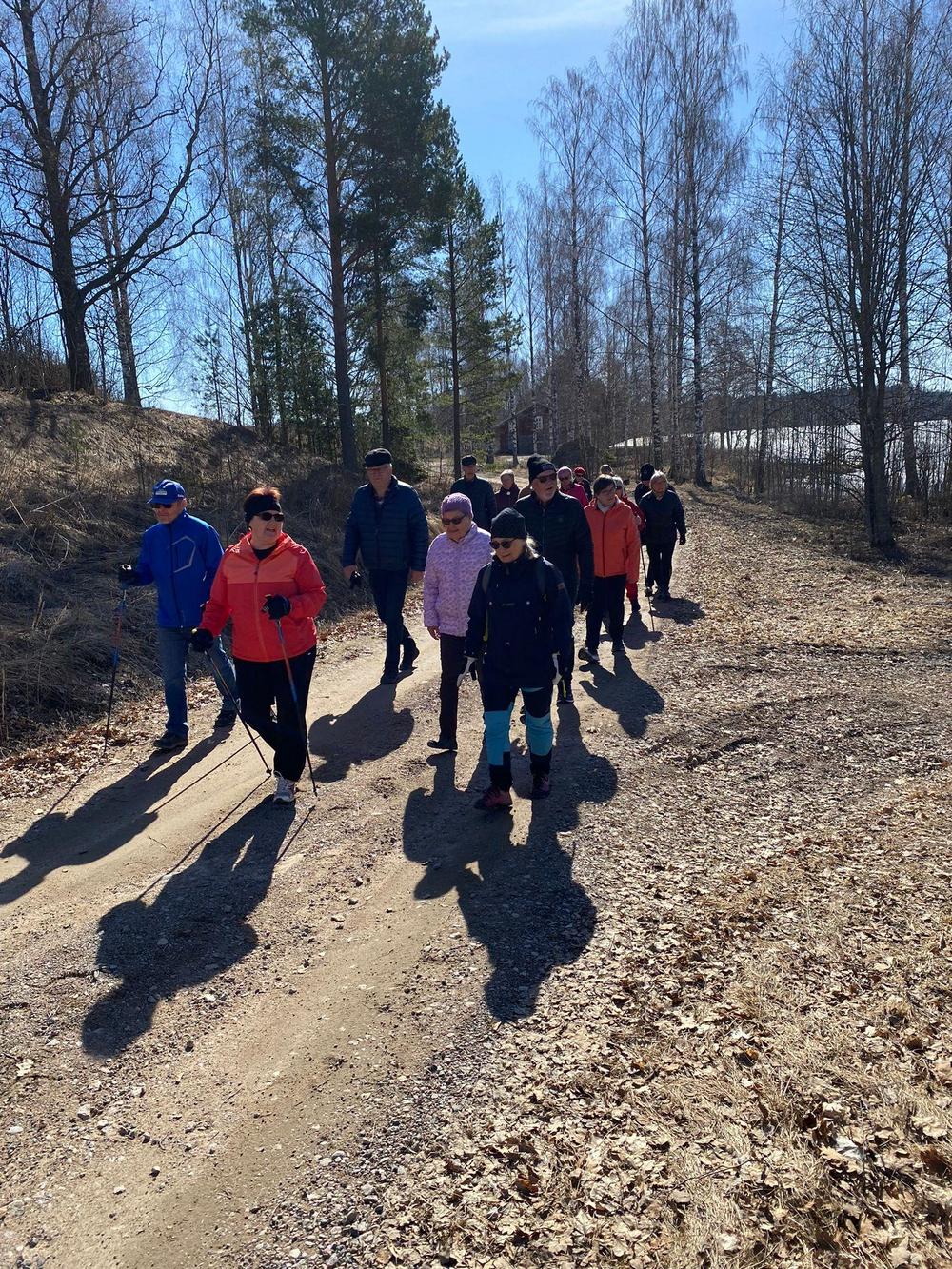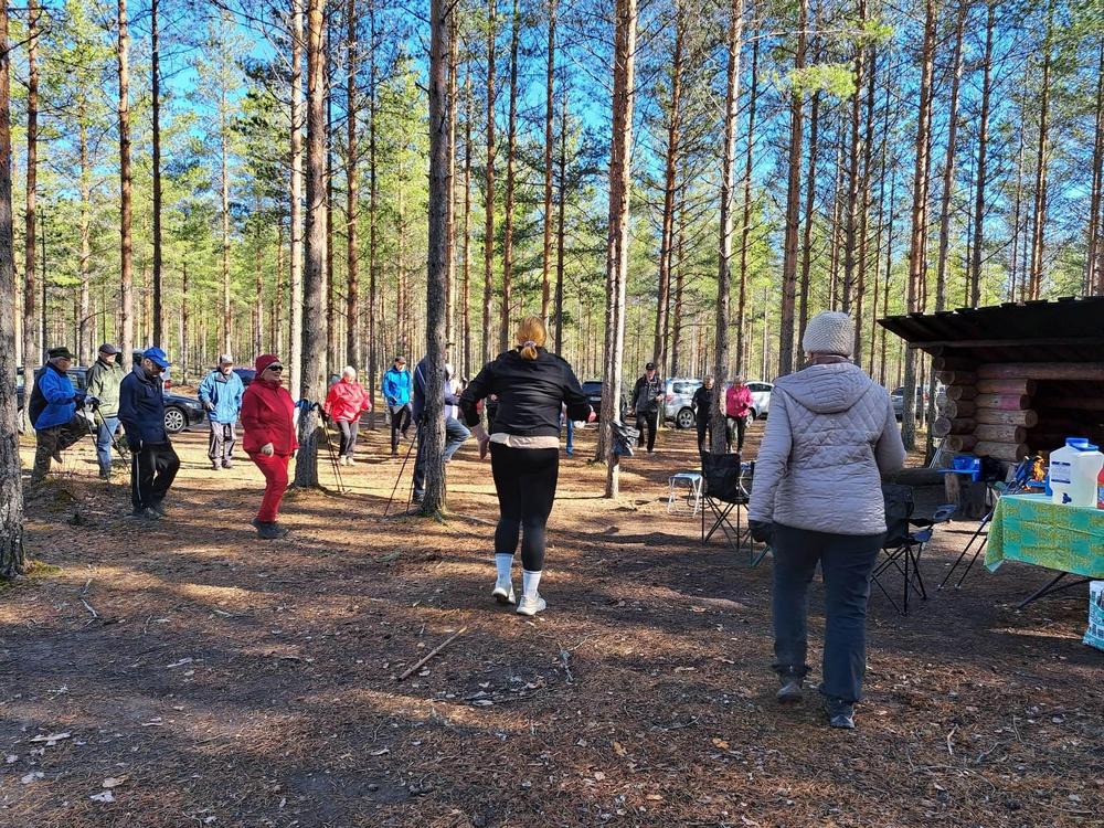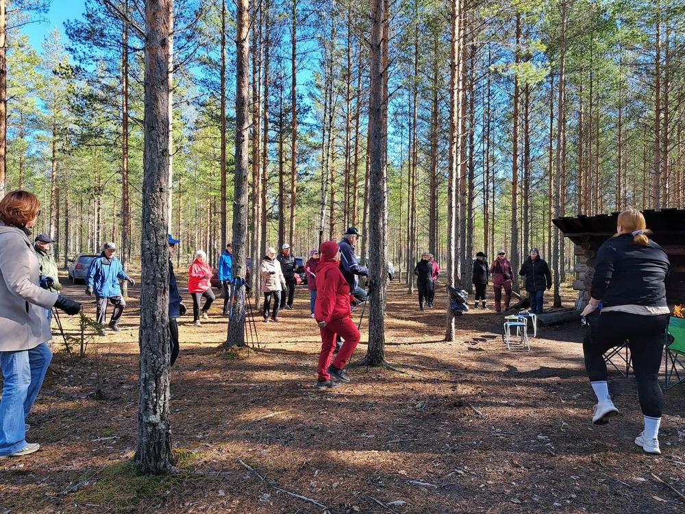 Senioreiden kävelytapahtuma oli tällä kertaa Hämekankaalla, lentokentän laavulla. Mukana oli kunnan liikunnanohjaaja Petra Jokinen. Hän kertoi tuleva kesän liikuntatarjonnasta.