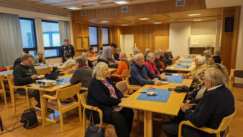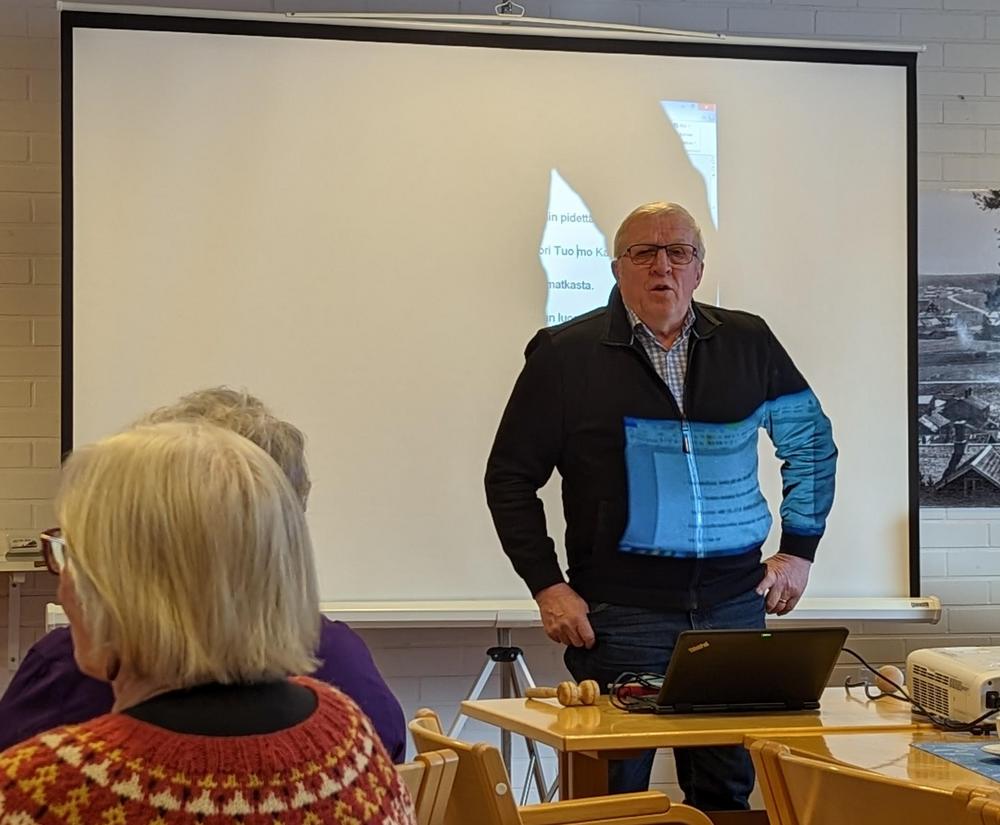 Kuukausitapaamisen vieraana oli Hämeenkyrön hyvinvointikoordinaattori Tuomo Kallio. Lisäksi Matti Suni kertoi Matka-Sunin Hämeenkyrön senioreille suunnittelemastaan elokuisesta Itä-Suomen retkestä.