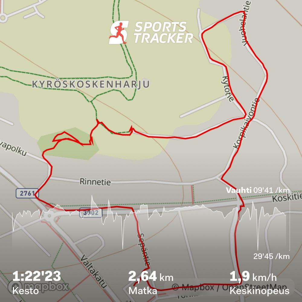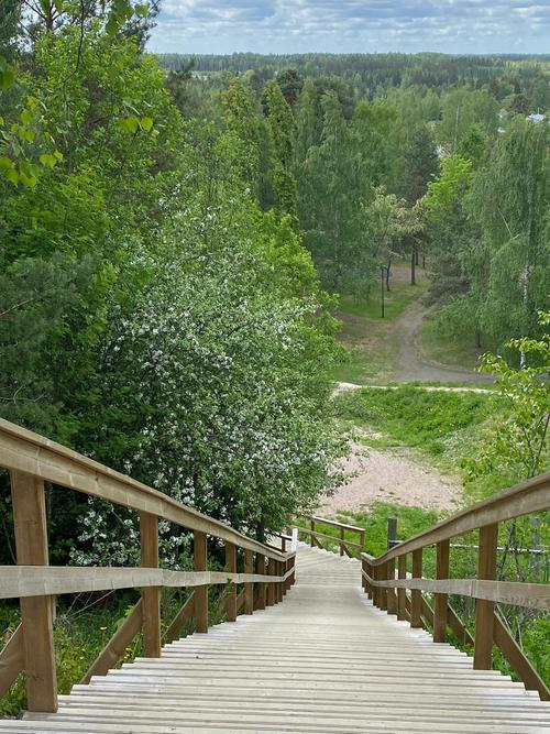 Kyläkävelyn aluksi kokoonnuimme Kyröskosken torille, mistä lähdimme Kyröskosken perhepuistoon. Nousimme yhdessä kuntoportaat Kyröskosken harjulle ja tutustuimme alueeseen. Kuntoportaiden kiipeäminen voi olla haastavaa, mutta samalla se on hauskaa ja palkitsevaa!