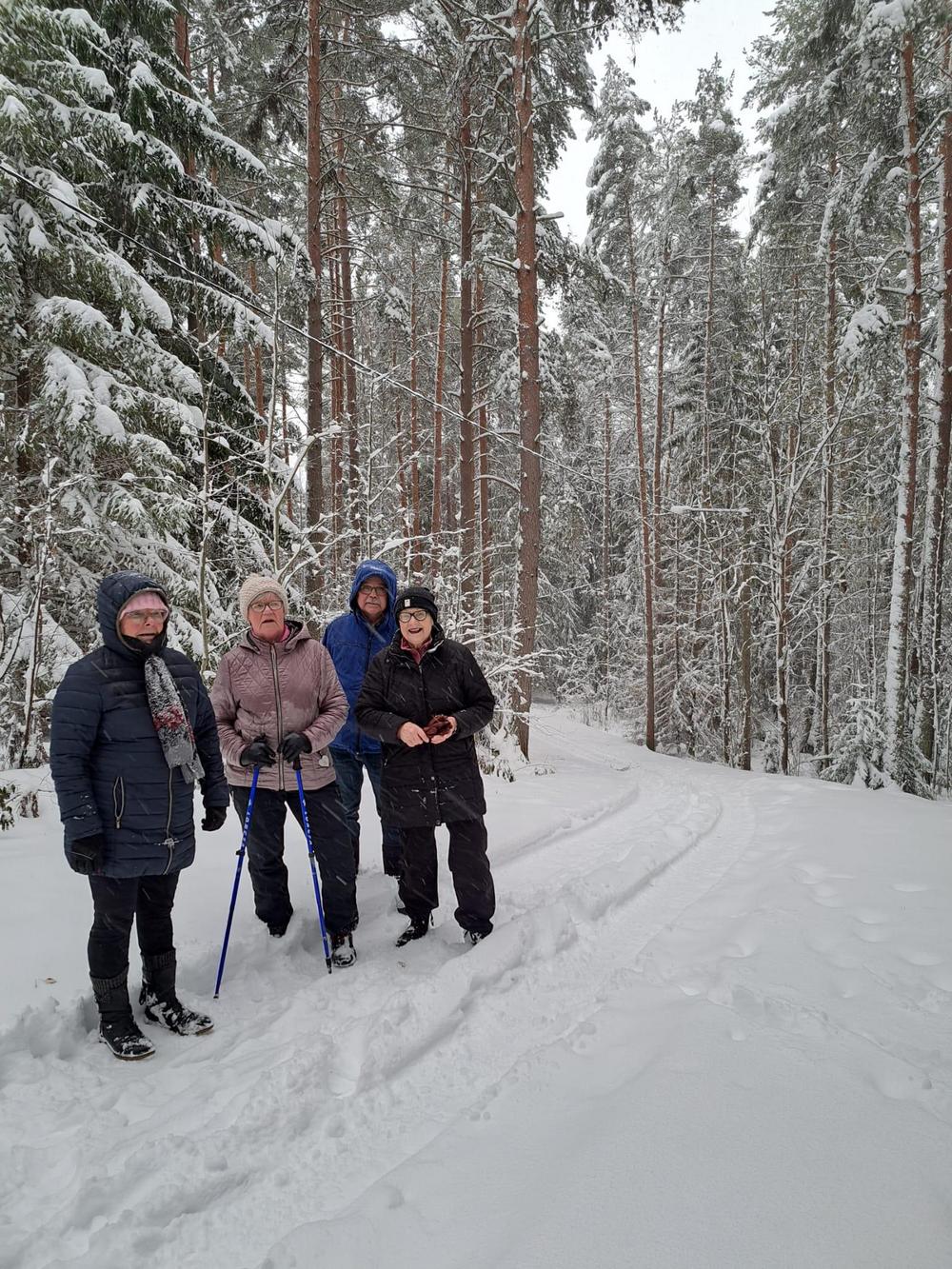 Kokoontumispaikkamme oli Tokmannin parkkipaikka, josta lähdimme liikkeelle kello 10 aamulla. Reittimme kulki lumisen maiseman halki. Yhdessäolo ja yhteinen matka tekivät kylmästä säästä hienon kokemuksen.
