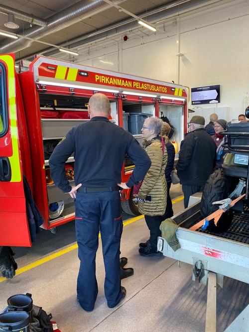 Hämeenkyrön seniorit kävivät tutustumassa Hämeenkyrön uuteen paloasemaan. Paloasema on moderni ja hyvin varusteltu, ja sen sijainti on erinomainen.